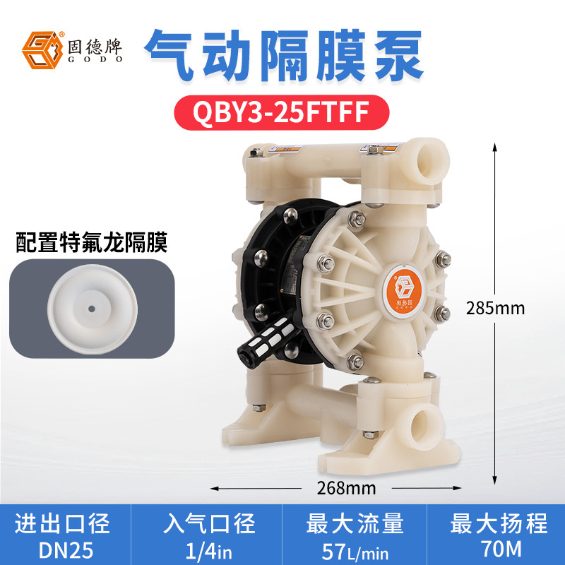 边锋集团固德牌气动隔膜泵QBY3-25全氟泵 耐腐蚀气动泵往复式