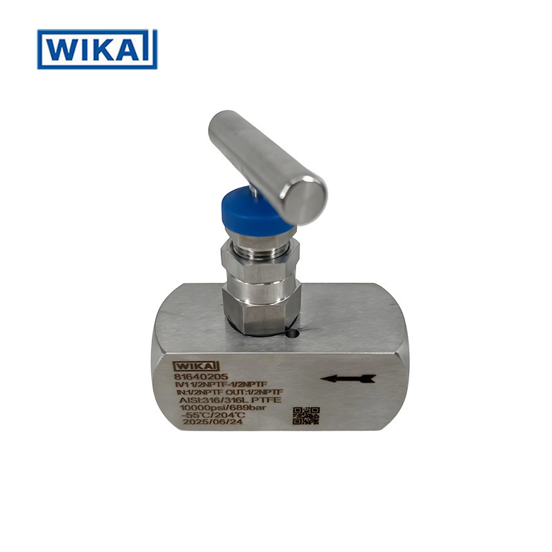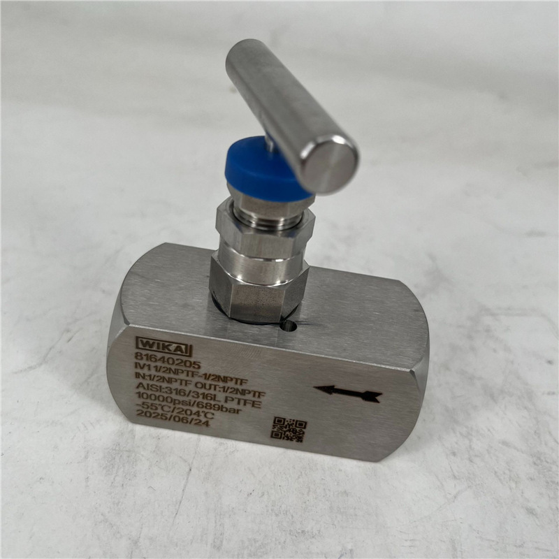 威卡(WIKA)型号81640205IV高压防爆针阀,专为严苛工业环境设计。采用AISI 316/316L不锈钢与PTFE密封材料,具备卓越耐腐蚀性和高强度,最大耐压达10000psi(689bar),工作温度范围-55℃至204℃。接口规格为1/2NPTF内螺纹进/出口,符合高压系统连接标准。阀门采用低磨损设计,阀针不旋转,确保在高压下仍可低扭矩平稳操作;防爆阀帽结构显著提升使用安全性,特别适用于石油天然气、石化、化工、电力工程及水处理等过程工业场景。产品真材实料,结实耐用,由山东润泽北方测控设备有限公司厂家直供,支持定制咨询,质量稳定,供货可靠。