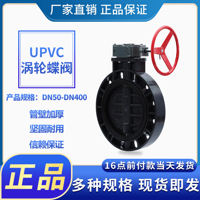 〉 UPVC涡轮蝶阀蜗齿式手摇蝶阀法兰对夹手轮化工EPDM阀门 300 350