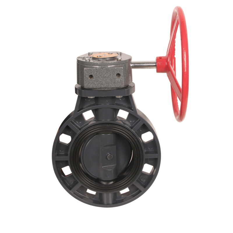 UPVC涡轮蝶阀蜗齿式手摇蝶阀法兰对夹手轮化工EPDM阀门 300 350