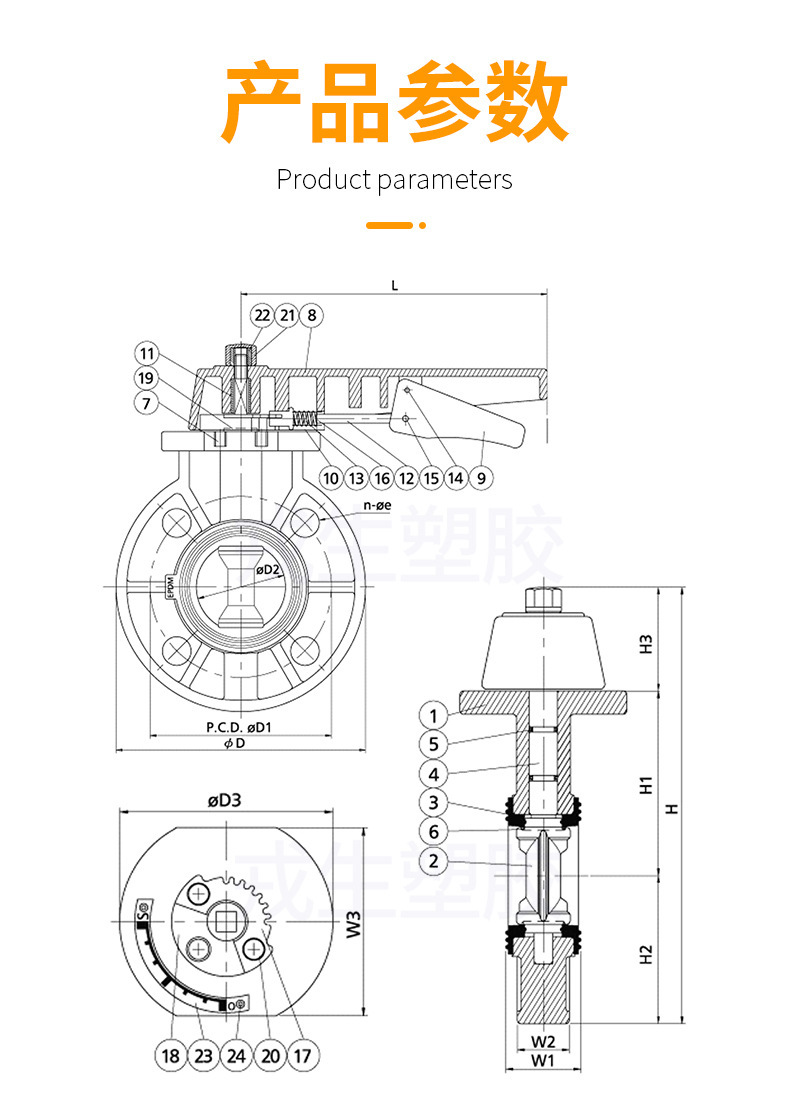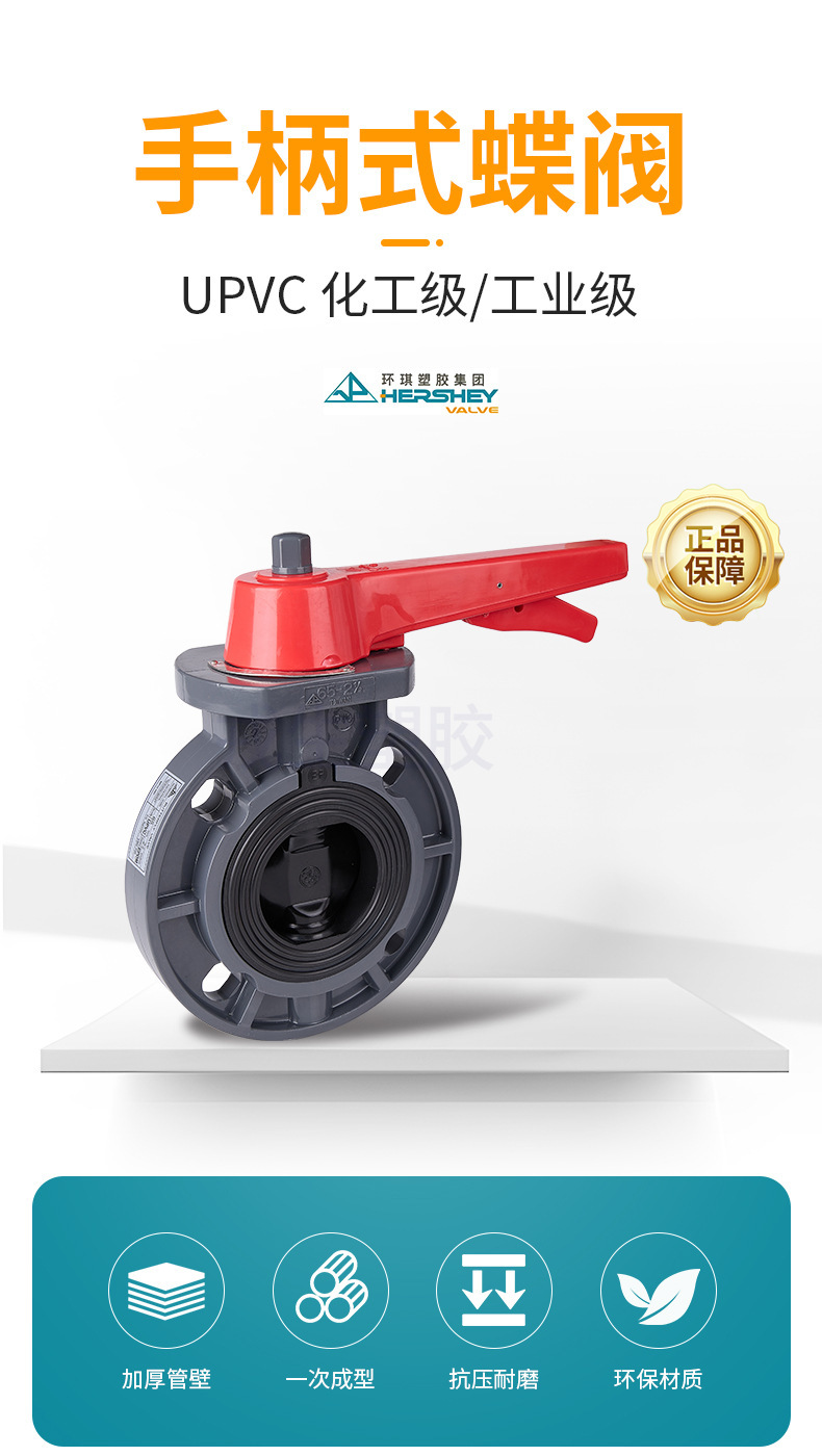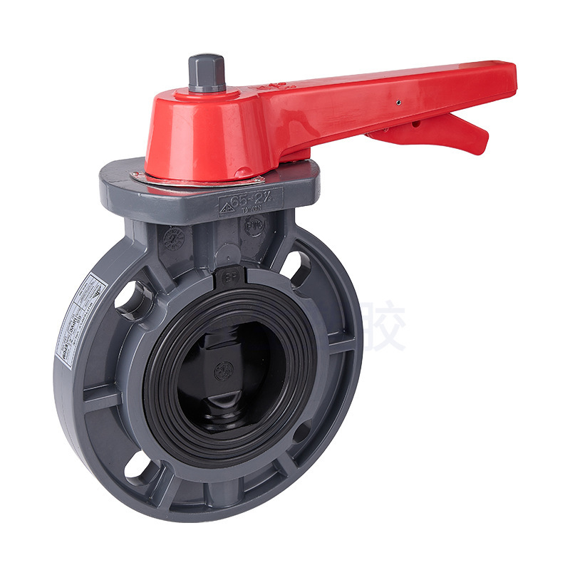 〉 环琪UPVC蝶阀把手式塑料开关阀门法兰PVC对夹式蝶阀国标63 75 90
