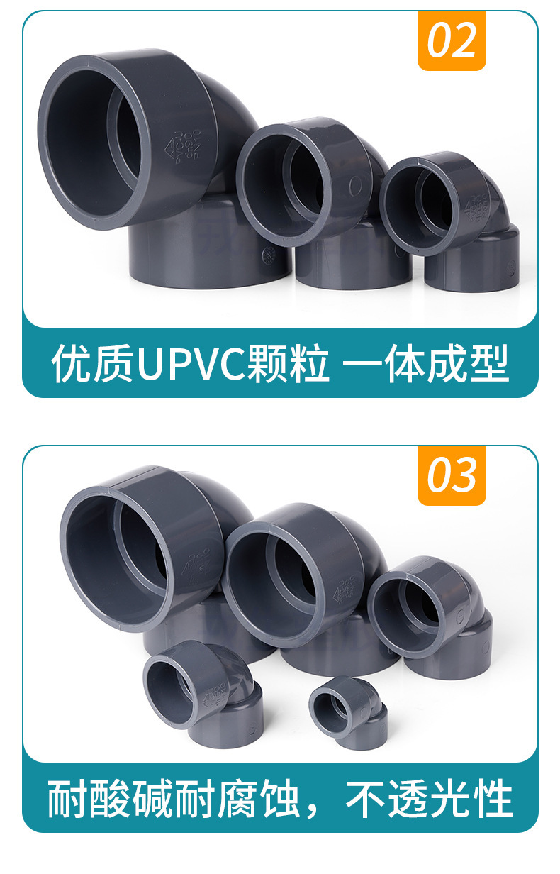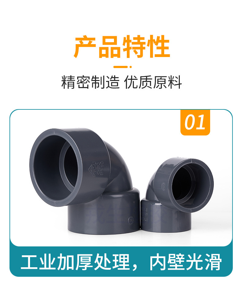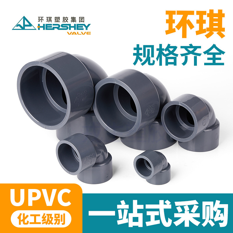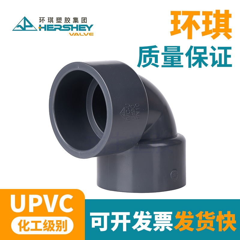 环琪塑胶集团(HERSHEY)出品的UPVC 90°弯头,采用优质UPVC颗粒一体成型,管壁加厚,内壁光滑,具备优异的抗压、耐磨和耐腐蚀性能。产品符合化工级/工业级标准,广泛应用于电子制造(如半导体、液晶显示器)、药品生产(医用纯水、无菌水)、化工合成(化肥、精细化工)以及高端制造(电镀、镀膜玻璃)等领域。精密制造工艺确保尺寸精准,密封性强,同时具备不透光性和环保特性,是工业管道系统的理想选择。
