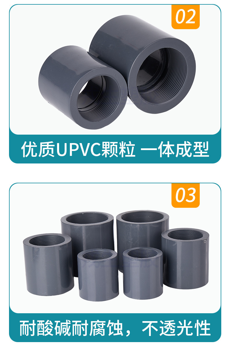 环琪upvc内丝直接 内插螺纹内牙直通 牙口接头化工PVC管水管配件