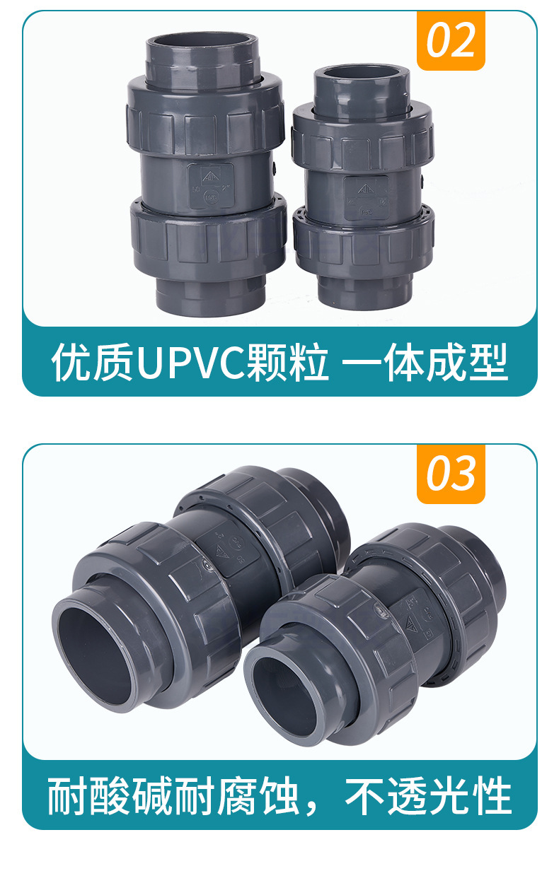 〉 环琪upvc双活接止回阀双由令止逆阀 球型逆止阀国标pvc-u塑料球芯