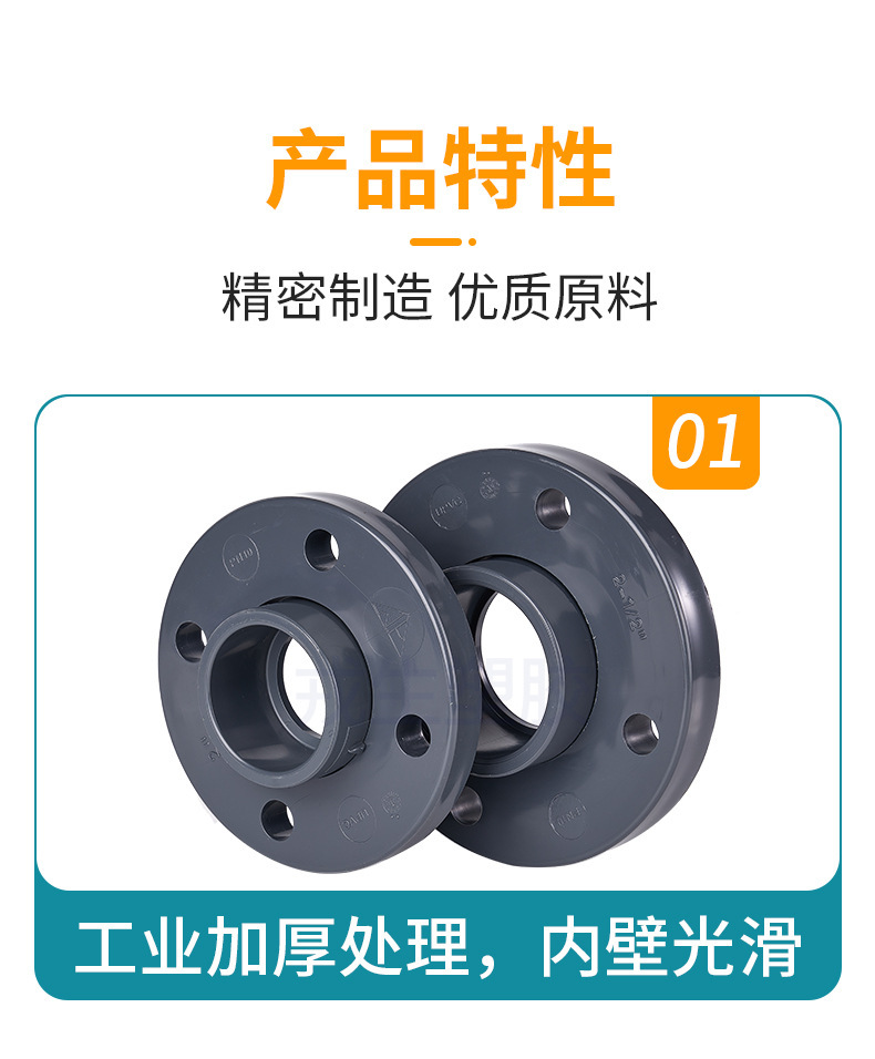 环琪(HERSHEY)活套法兰,采用化工级/工业级优质UPVC材料,6mm加厚管壁一次成型,具备优异的抗压性与耐磨性。产品选用精密制造工艺与高纯度UPVC颗粒,内壁光滑,流体阻力小,具有良好的耐酸碱、耐腐蚀性能和不透光性。广泛应用于半导体、电子工业、集成电路、液晶显示器、医药制剂、化工反应冷却、电镀工艺、化妆品制造等高端工业领域。环保材质,安全可靠,是工业管道系统中理想的连接解决方案。