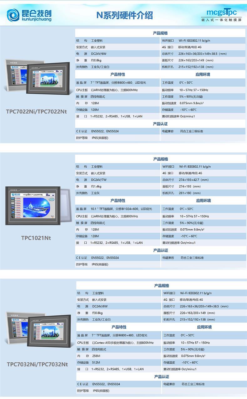 〉 MCGS昆仑通态物联网触摸屏4GWIFITPC7032NT/NI1021/31/1431/1530