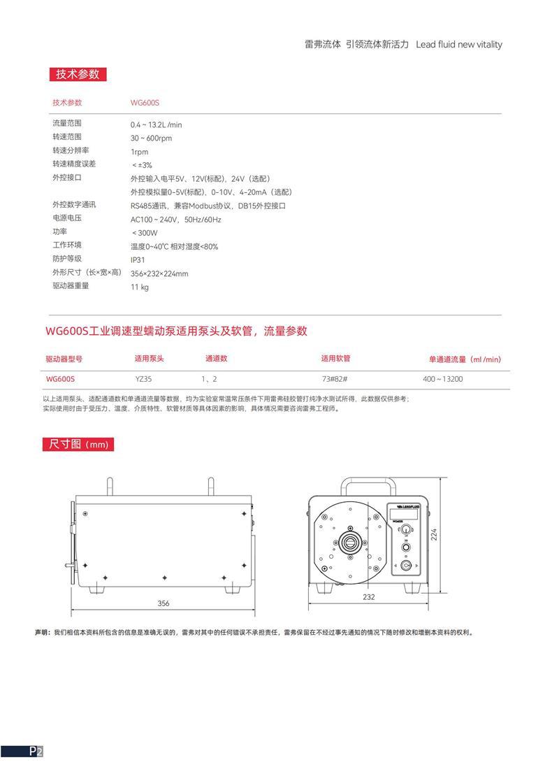 〉 保定雷弗WG600S工业调速型蠕动泵YZ35泵头数显转速304不锈钢外壳