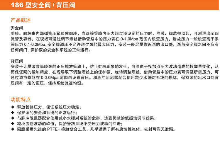 阔思(KUOSI)PVDF安全阀/背压阀,采用优质PVDF材料制造,具备卓越的耐酸碱和耐腐蚀性能,广泛应用于化工、石化、制药、水处理等高要求工业领域。产品口径范围DN15-DN65,工作压力0-1.0MPa,可通过调节螺丝在现场精确设定泄放或背压压力。 安全阀用于保护泵和管路系统,当系统压力超过设定值时自动泄压,防止过压损坏;背压阀安装于计量泵出口,防止虹吸,稳定投加精度,配合脉冲阻尼器可有效减少水锤冲击,保持系统流速稳定。 关键部件如隔膜采用PTFE+橡胶复合结构,密封可靠,无泄漏,适用于多种腐蚀性介质。连接方式包括法兰、丝扣、热熔等,适配国标、美标、日标等多种管材标准。 Lige利歌流体系统专业生产各类耐腐蚀流体控制设备,坚持品质为本,提供一站式采购服务,支持非标定制,确保客户获得经济、可靠的系统解决方案。