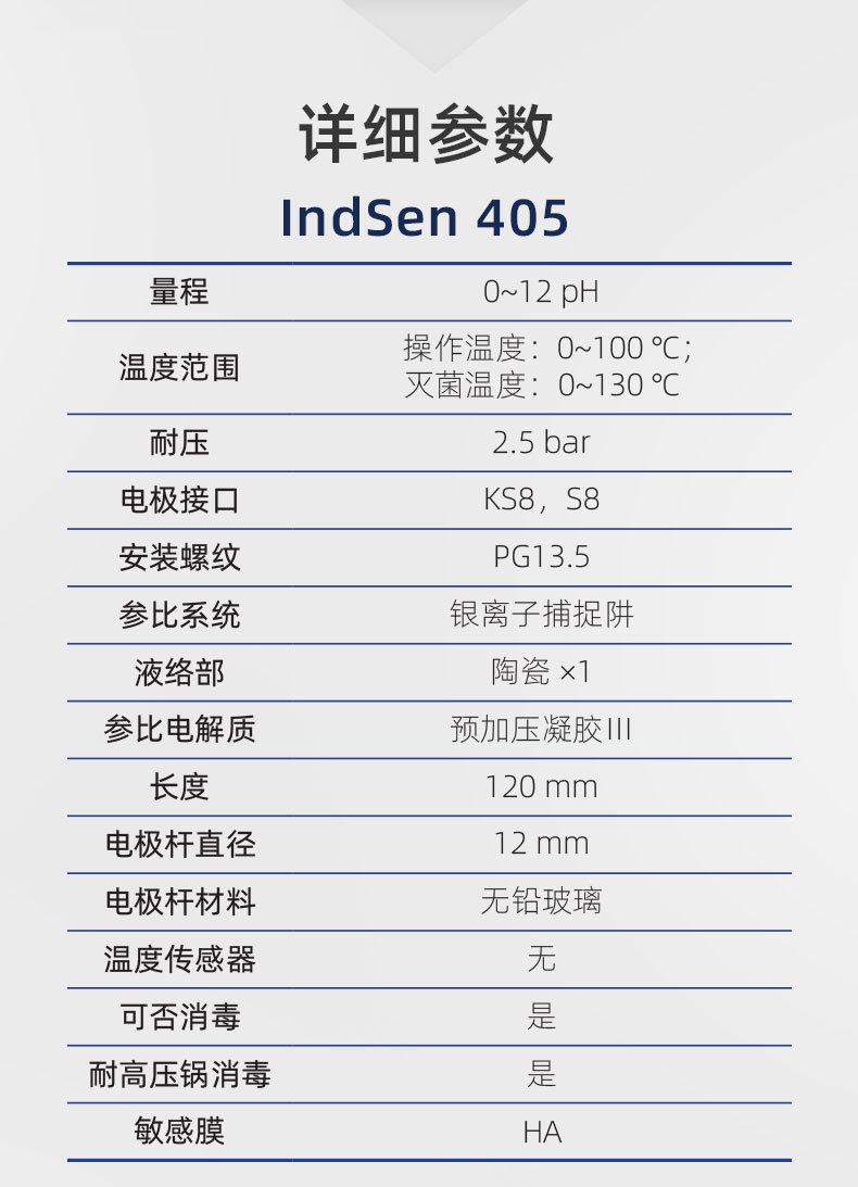 三信IndSen 405/305系列工业在线pH/ORP复合电极专为生物技术和制药行业设计,具备高耐压、耐高温和长寿命特性。IndSen 405采用HA玻璃膜和预加压凝胶Ⅲ电解质,可在130℃反复灭菌后仍保持性能稳定;IndSen 305则使用铂金环作为敏感元件,适用于ORP测量。双液络部结构搭配银离子捕捉阱参比系统,有效防止含硫介质堵塞,延长电极使用寿命。电极耐压达2.5 bar,操作温度0~100℃,灭菌温度可达130℃,满足高压灭菌(SIP/CIP)要求。外壳采用无铅玻璃材质,直径12mm,长度120mm,接口为KS8/S8,安装螺纹PG13.5,支持浸入式或流通式安装。产品通过CE、ISO 9001:2015及RoHS认证,品质可靠,广泛应用于生物制药、化工、饮料、废水处理等领域。上海三信专注电化学分析30年,提供专业技术支持与定制化服务,保障过程测量精准高效。