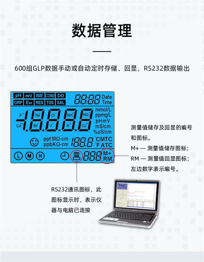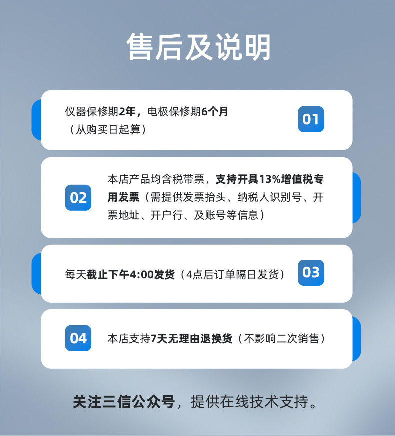 SANXIN MP526电导率/溶解氧测量仪是上海三信(Sanxin)推出的高性能水质分析设备,融合电导率、溶解氧、TDS、盐度、电阻率及温度多参数测量于一体。产品基于三信30年电化学研发经验,畅销美日欧市场,符合ISO 9001:2015质量体系认证。 该仪器采用先进的自动变频与调压技术,配合K=1电导电极,实现0~200 mS/cm宽范围高精度测量,并针对纯水和高纯水提供非线性温度补偿,显著提升测量准确性。溶解氧模块搭载专利三合一极谱式电极(专利号:ZL201320624287.6),集成温度与盐度传感器,极化时间仅需5分钟,支持自动温度、盐度和气压补偿,确保测量结果稳定可靠。 MP526具备600组GLP数据存储功能,支持手动或定时保存,并通过RS232接口实现数据输出与电脑连接。标配901型智能搅拌器,可记忆转速,提升测量重复性。仪器整机达到IP54防尘防溅等级,硅胶保护帽有效防护电极接口,适应复杂实验环境。 标准配置包括MP526主机、2401-M电导电极、DO500溶解氧电极、智能搅拌器、校准溶液、隔膜帽、电源适配器等全套配件。享受2年仪器保修、6个月电极保修服务,支持开具13%增值税专用发票。关注三信官方公众号,即可获取在线技术支持。 选择SANXIN,选择中国精密仪器的匠心品质。
