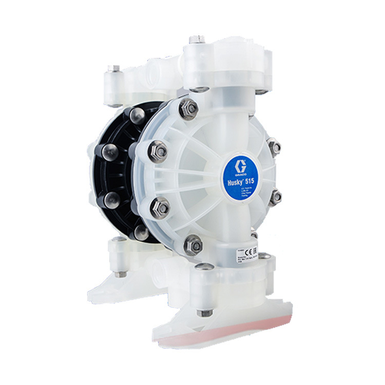 1/2 英寸(12.7 毫米)的 Husky 515 双隔膜泵可在低空气压力 20 磅/平方英寸(1.4 巴,0.14 兆帕)的情况下运行,可选聚丙烯、乙缩醛和聚偏氟乙烯(PVDF)材质。