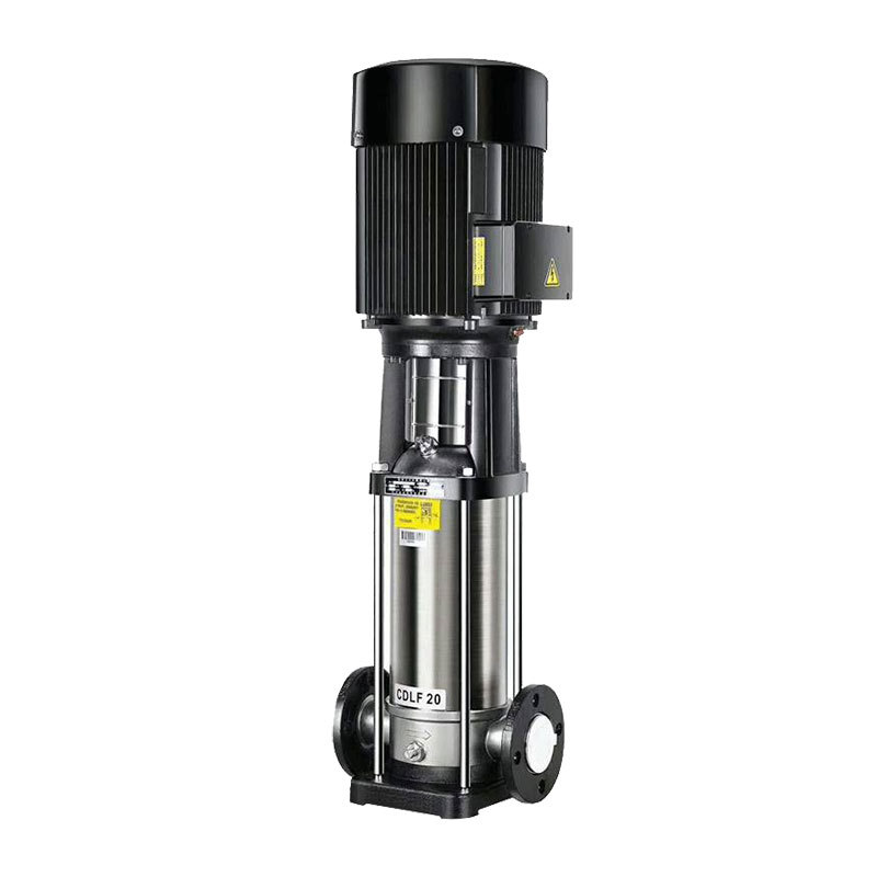 南方CDL,CDLF非自吸轻型立式多级离心泵,电机轴通过联轴器直接与泵轴联接,叶轮导叶采用不锈钢板冲压焊接或不锈钢精密铸造制成,泵进出水口在泵底同一直线上(可配IEC或NEMA电机)。