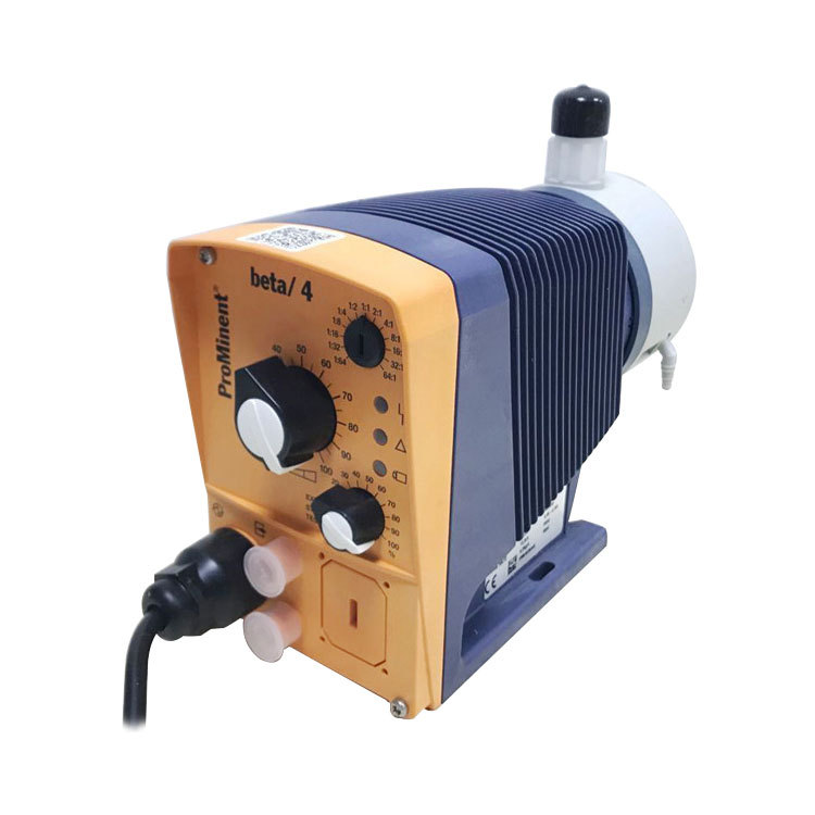 ProMinent Beta系列电磁驱动计量泵是一款高性能、高可靠性的精密投加设备,广泛应用于水处理、环保、化工等行业。该系列泵采用电磁驱动原理,确保流量精确可控,支持多种泵头材质(如PP、NP、TT、SS、PV等),适应不同化学介质的输送需求。产品具备在高背压和中等背压下稳定的计量能力,最大背压可达25bar,单次冲程流量范围宽广,满足多样化工况要求。部分型号配备自动排气装置,提升自吸性能与运行稳定性。安装尺寸紧凑,维护简便,适合空间受限场合。适用于计量高粘度或腐蚀性液体,是工业自动化流体控制的理想选择。