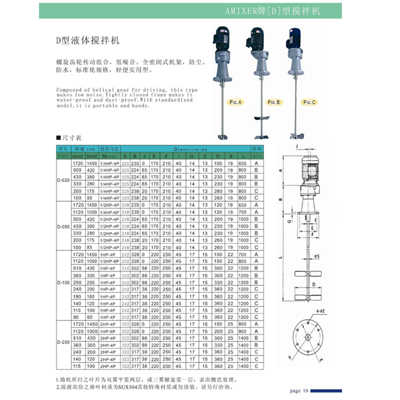 〉 Amixer爱米克斯液体搅拌机D系列实用型可移动式不锈钢立式搅拌器