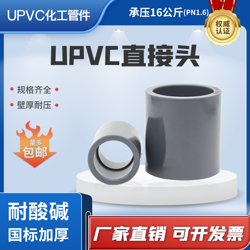 upvc工业深灰色直接管箍接头耐压16公斤pvc工业管接头DN65 80 100