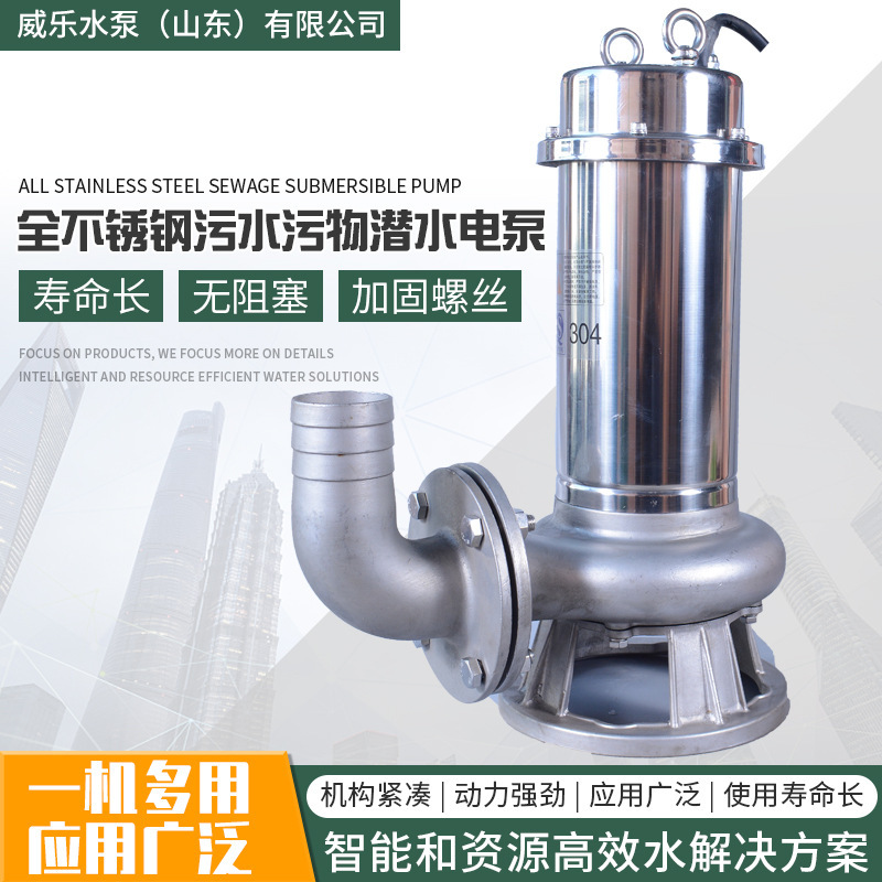 供应不锈钢排污泵 精密铸造耐腐蚀泵 全不锈钢污水污物潜水电泵