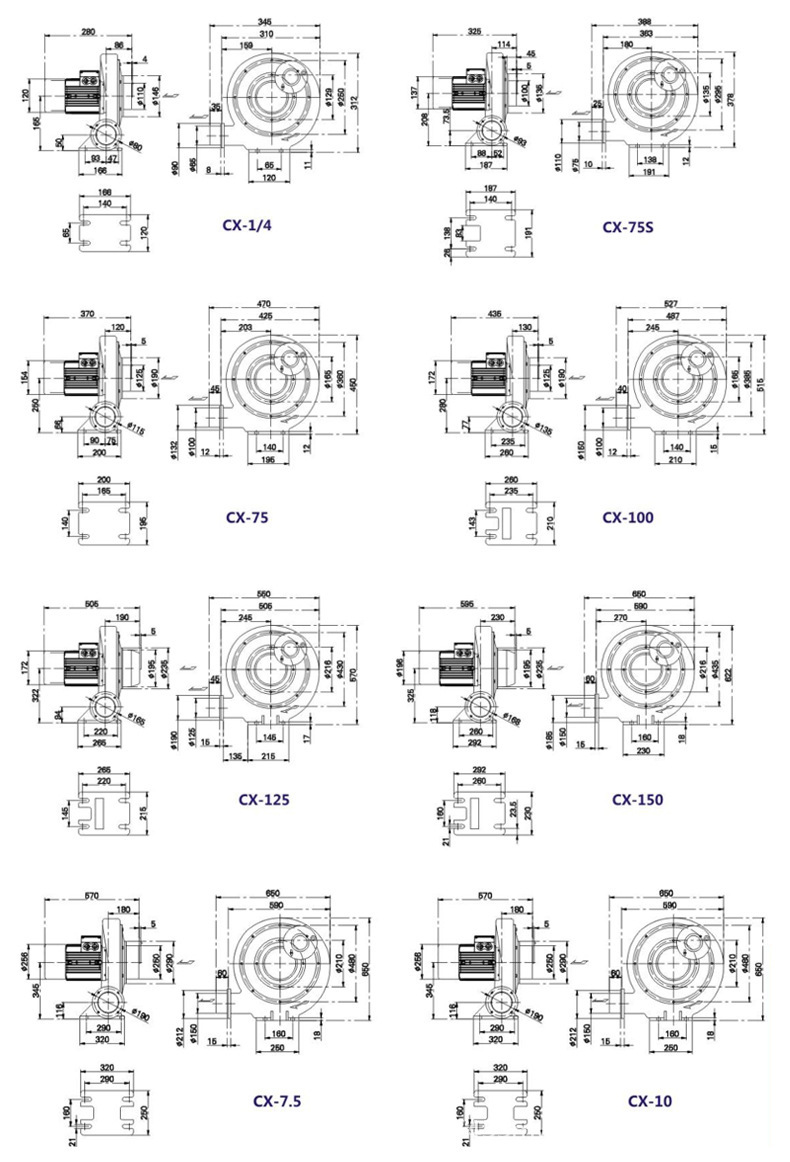 CX-100A 1.5kw透浦式中压风机 除尘净化气体输送抽真空用鼓风机