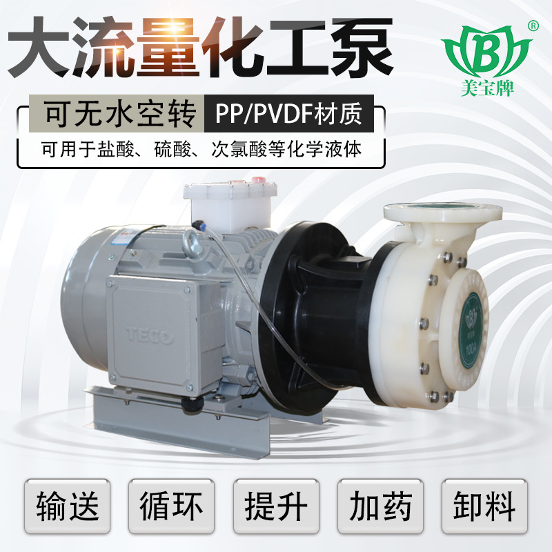美宝牌耐酸碱防腐泵,是中国耐酸碱泵浦行业的领导者,专为环保设备商提供一站式解决方案。产品采用PP/PVDF注塑材质,配备东元铜芯电机,具备无水可空转、耐腐蚀、抗氧化、使用寿命长等优势,适用于精细化工、光伏废水、印染、表面处理、机械加工、医院废水、酸洗厂、涂装等多种应用场景。 美宝拥有85000m²现代化生产基地,集注塑、加工、测试、组装于一体,确保每一台泵均自主生产、品质可控。公司在全国设有12家售后服务网点,提供两年质保、终身维护,并承诺质量问题全额退款。 主要产品系列支持1-15KW功率,出入口径涵盖40mm至100mm,流量可达1300L/min,扬程最高42米。型号齐全,可根据需求选择不同材质(NBR/EPDM/VITON)、扬程(高/低)及频率(50Hz/60Hz)配置。 美宝环保已通过ISO质量认证、ISO环境认证、欧盟CE认证等多项权威资质,开具正规增值税专用发票,全国发货含合格证、说明书、质保卡等7项基础服务。常年参加全国50余场行业展会,服务覆盖昆山、重庆、常州、天津、东莞、温州、泉州、南京等多个城市。 选择美宝,就是选择专业、可靠与信赖。防腐泵,找美宝!