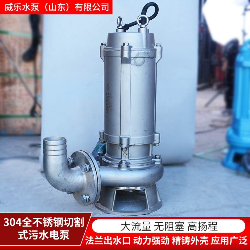 这是一款高性能的304全不锈钢切割式污水电泵,具备大流量、无阻塞、高扬程特点,广泛应用于各种复杂工况。产品采用国标法兰出水口,可连接弯头或法兰片,出水速度快且安装方便;配置优质全铜电机与双端面机械密封,搭配油缸结构,确保运行稳定、无泄漏;内置热保护装置,有效防止电机过热烧毁,提升使用安全性。泵体采用精铸304不锈钢材质(可选316/316L),耐酸碱、耐腐蚀,所有螺丝均为不锈钢材质,适应恶劣环境。大孔径加厚底座设计增强稳定性,铁芯与机壳全接触实现优良散热,温升更低,支持高温定制。叶轮具备搅匀与切割功能,有效处理含杂质污水。标配7米国标铜电缆线,可按需求加长,支持电压频率定制。适用场景包括:工厂、商业严重污染废水排放、城市污水处理厂、住宅区污水站、人防系统、医院宾馆排污、市政工程、建筑工地、农村沼气池、农田灌溉及自来水厂供水等。另可配套水泵专用控制柜及消防电气控制系统,提供完整解决方案。