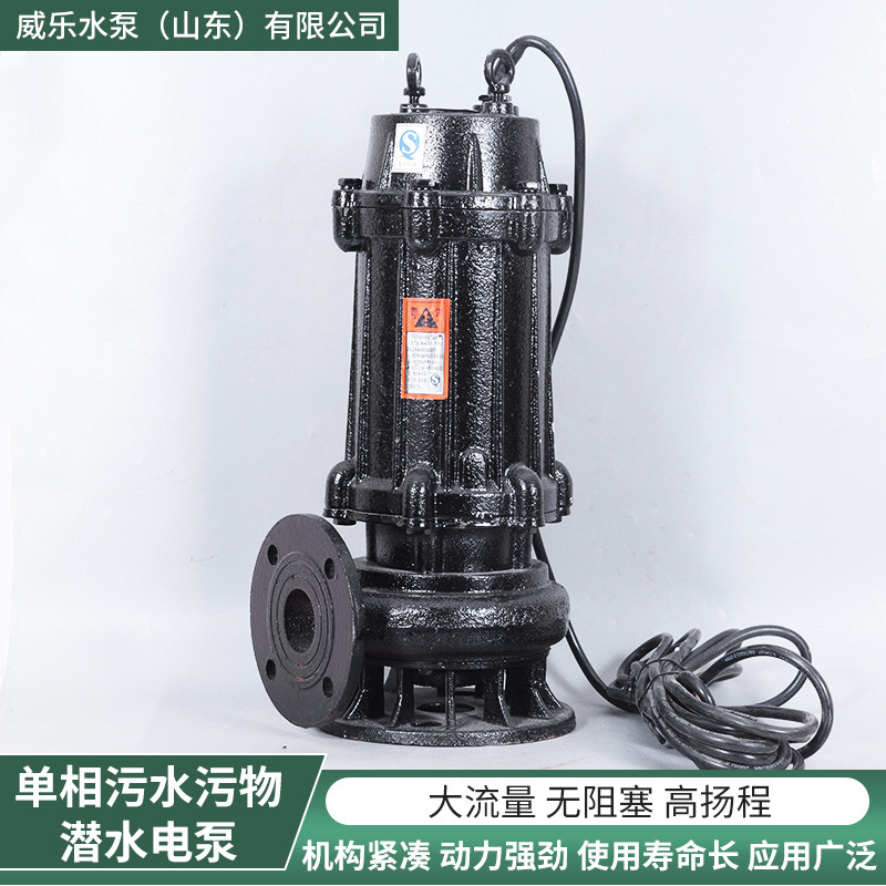 大流量单相污水污物潜水电泵,结构紧凑、体积小、移动方便,安装简便,无需建造泵房,可直接潜入水中工作,大幅降低工程成本。产品采用精良设计,泵体美观,冷却性能优异,有效延长电机使用寿命。配备无堵塞叶轮、坚固底座和高效出水口,具备耐腐蚀、耐磨、运行稳定等特点。适用于化工、石油、制药、采矿、造纸、水泥厂、炼钢厂、电厂以及城市污水处理厂排水系统。标配不锈钢吊环、国标电缆线、密封警告标识和专用水泵控制柜,确保安全可靠。弯管接头设计便捷,出水流畅。整机坚固耐用,维护简单,是工业与市政排水的理想选择。公司库存充足,发货及时,售后服务完善,全国客户优选品牌。