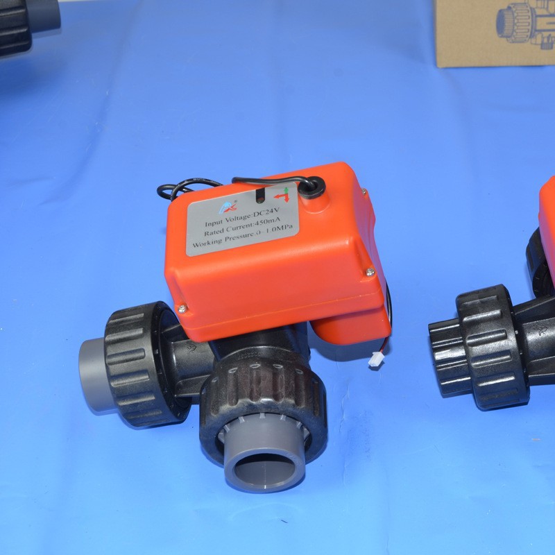 AOBL电动PVC双由令球阀开关门型塑胶由令阀门DN15 20 25 32 40 50