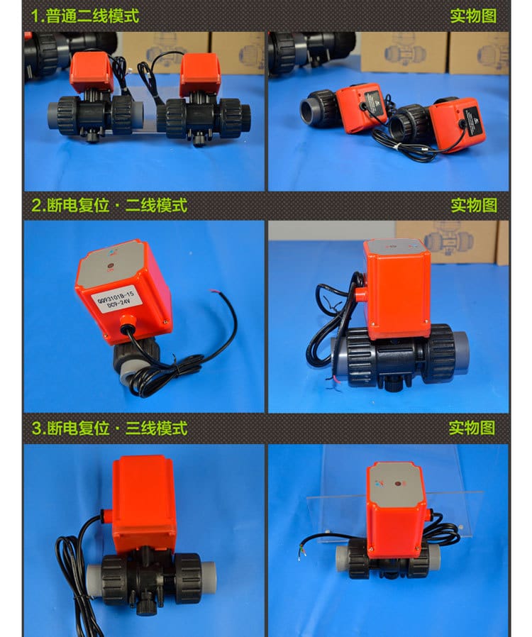 AOBL电动PVC双由令球阀开关门型塑胶由令阀门DN15 20 25 32 40 50