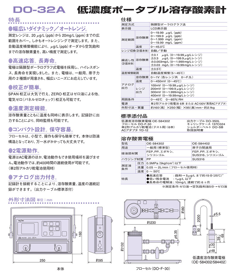 〉 日本TOA-DKK东亚电波低浓度便携式溶解氧仪DO-32A