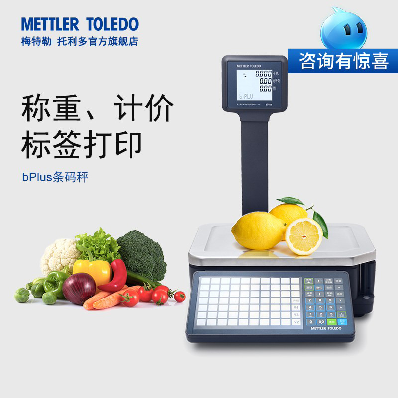 〉 梅特勒托利多商超电子秤bPlus条码秤打码称水果超市收银称一体机
