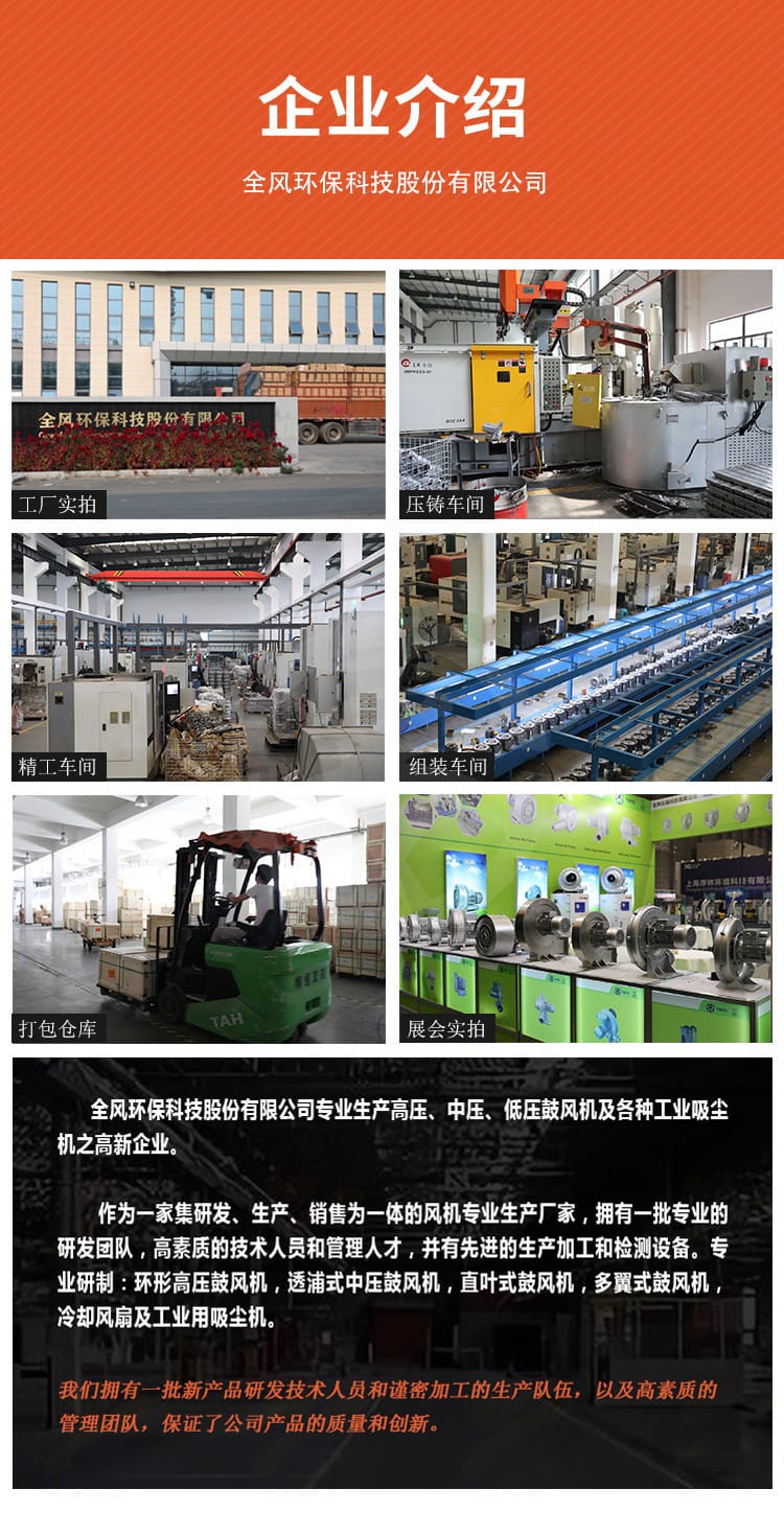 全风环保科技股份有限公司专业生产FB系列防爆高压鼓风机,产品采用铸铝机壳、航空铝材高压螺旋风叶和防爆高效电机,具备吹吸两用、风力强劲、散热性能好、耐高温、防火耐腐蚀等优势。防爆等级可选EX-DIIBT4或EX-DIICT4,防护等级达IP55/IP56/IP65,适用于煤矿、石油天然气、化工、纺织、冶金、城市燃气等多个行业。风机设计紧凑,性能稳定,配备离心循环系统与精密车工叶轮,确保出风均匀、吸力强劲。公司提供多种型号选择,涵盖0.75KW至18.5KW功率范围,支持特殊电压、频率、配件更换及OEM定制服务。工厂直销,库存充足,售后服务完善,是各行业气源动力设备的理想选择。