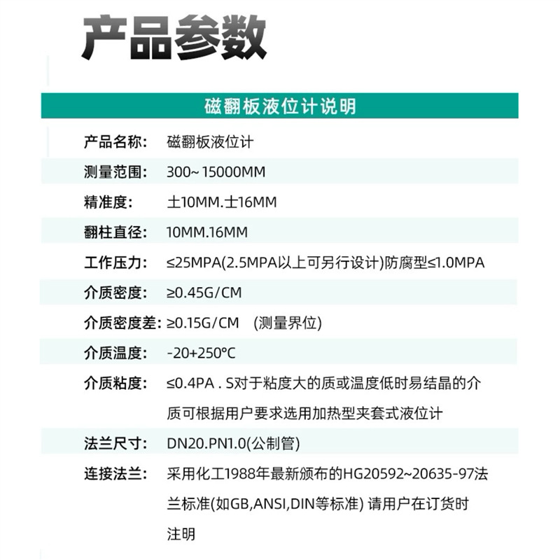 磁翻柱液位计是根据浮力原理和磁性耦合作用研制而成的液位测量仪表。当被测容器中的液位升降时,主导管内的浮子随之上下移动,其内部的永久磁钢通过磁偶合驱动现场指示器上的红白翻柱翻转180°。液位上升时,翻柱由白色变为红色;液位下降时,由红色转为白色。红白交界处即为实际液位高度,实现清晰直观的液位指示。 本产品在吸收国外先进技术基础上进行优化升级,具备高密封、防泄漏、耐高温、高压、高粘度及强腐蚀性介质测量能力,全过程测量无盲区,显示醒目,读数直观。可选配液位报警开关和LB型液位变送器,实现液位上下限报警、自动控制,并输出4~20mA标准信号,支持远距离监测、记录与控制系统集成。 广泛应用于电力、石油、化工、冶金、环保、船舶、建筑、食品等行业的液位与界位测量与自动化控制场景,是工业过程液位监测的理想选择。