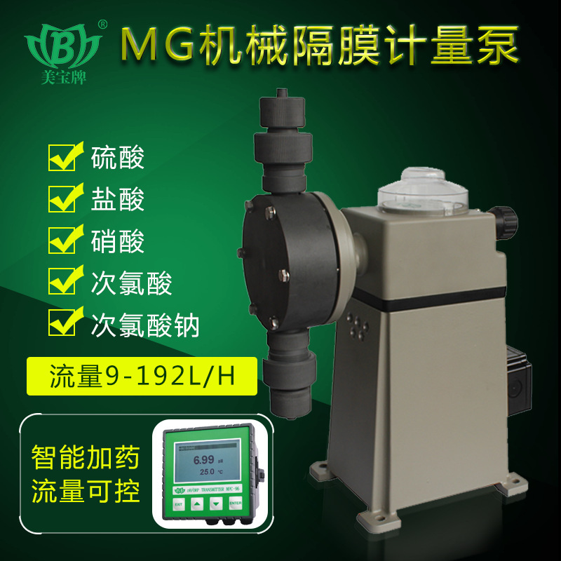 美宝牌是中国耐酸碱泵浦行业的领导者,专注于防腐泵的研发与制造。公司拥有占地85000m²的现代化生产基地,配备注塑、加工、组装、测试等全流程生产线,并通过ISO质量管理体系、ISO环境管理体系、欧盟CE认证等多项权威认证,确保产品品质稳定可靠。 美宝机械隔膜加药泵采用铜芯电机与过载保护装置,运行安全稳定;泵体为精密数控铸件,接液端设计精巧,杜绝泄漏;提供PP、PVDF、SUS等多种泵头材质选择,适应不同腐蚀性介质需求。产品流量可调,支持加装数字控制器,实现就地或远程精准控制。 主要产品系列包括: - MT系列:最大流量60L/h,高压型设计,适用于小流量高压力工况; - MG系列:中大流量设计,最大可达192L/h,功率覆盖25W至120W,适配多种电压选项; - MNX系列:综合性能优异,最大压力达12kgf/cm²,广泛用于水处理、化工等行业。 美宝计量泵可输送次氯酸钠、盐酸、硫酸、双氧水、PAC、PAM、氢氧化钠等多种酸碱溶液,广泛应用于环保、污水处理、电子、制药等领域。公司在全国设有多个分支机构与合作伙伴,每年参加50余场行业展会,持续服务 thousands 家客户,提供正规增值税专用发票,支持定制化解决方案。 选择美宝,就是选择专业、可靠、高效的耐腐蚀泵解决方案。防腐泵,找美宝!