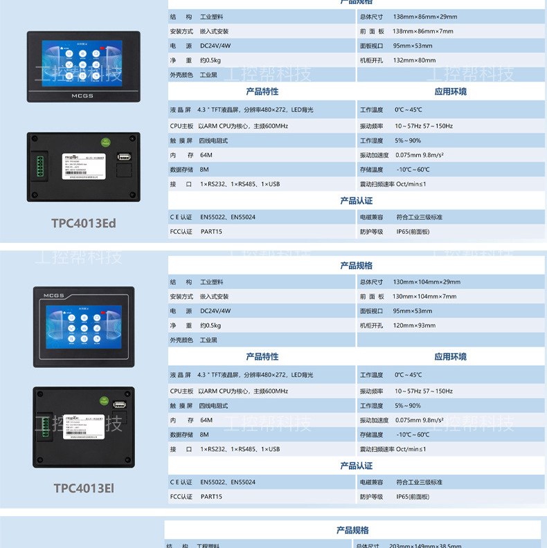 〉 昆仑通态触摸屏MGCS 4.3寸 TPC4012ElEw7012CFEw7022EtEi1021ETI