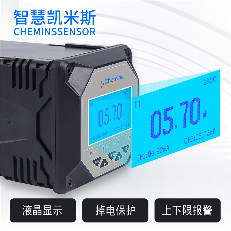 阔思(KUOSI)iPH-306 pH监测仪是一款专业级水质监测设备,配合MPC-202多功能控制器使用,具备低功耗、抗干扰、高精度等特点。产品采用专利探头设计,电极寿命成倍延长,支持自动/手动温度补偿,测量范围0~14.00pH,精度达±0.1pH,分辨率0.01pH。传感器支持RS-485 Modbus/RTU通讯协议,可无缝接入PLC、DCS、工业计算机等系统,实现多机互联与数据实时上传。 MPC-202控制器配备2.8英寸单色液晶屏,支持4-20mA隔离变送输出、上下限报警功能及蓝牙无线传输,便于现场操作与远程监控。整机IP68高防护等级,多层密封设计,防水防尘,适用于复杂工业环境。 典型应用包括青岛城市饮用水监测、成都龙泉污水处理厂、威海海洋牧场等项目,广泛用于生活污水、工业废水、水产养殖及海洋环境等场景。支持浸入式、流通式、法兰式等多种安装方式,搭配无线模块可实现无布线便捷部署。