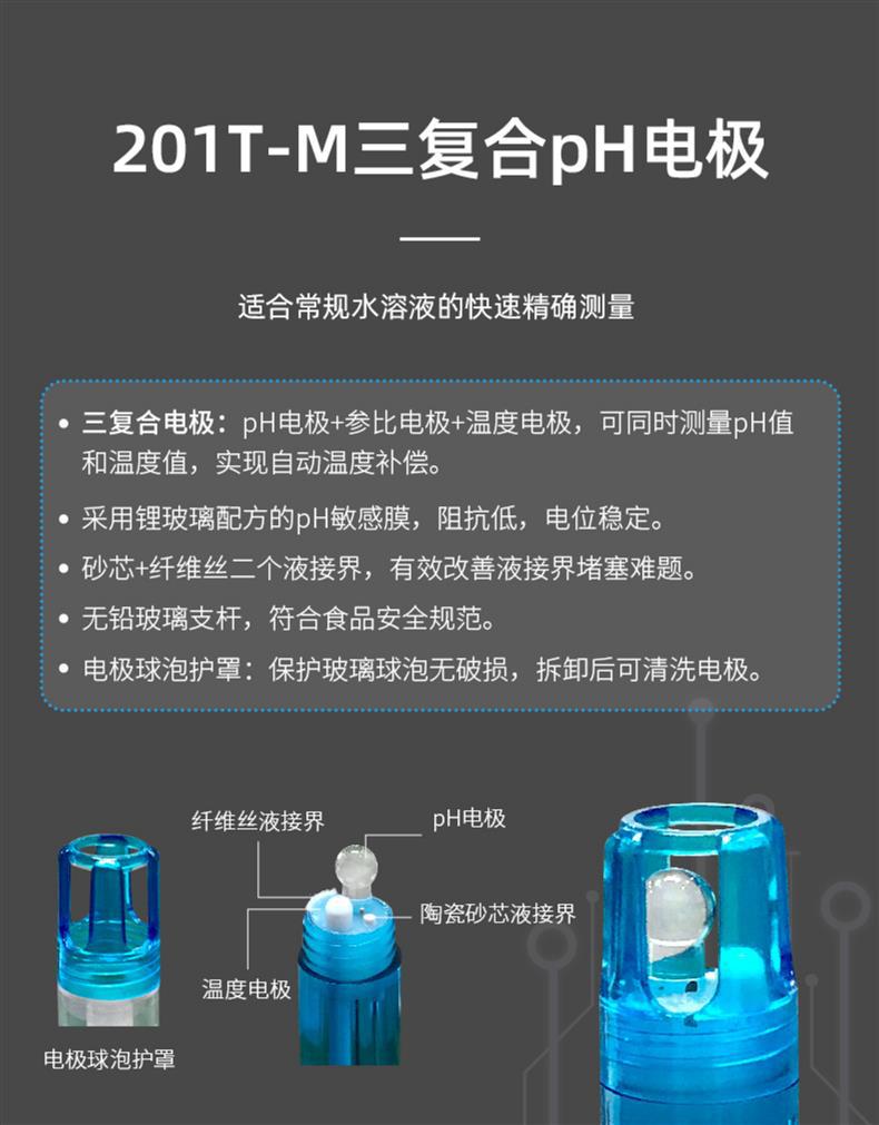 Apure塑壳PH电极E-202实验室泳池便携式ph电极传感器探头BNC接口