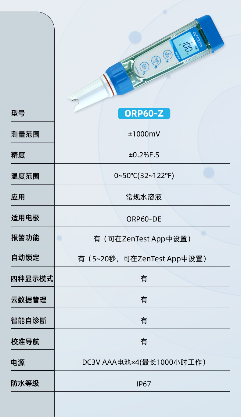 〉 上海三信Apera ORP60-Z蓝牙笔式ORP计检测仪水质ph传感器orp检测
