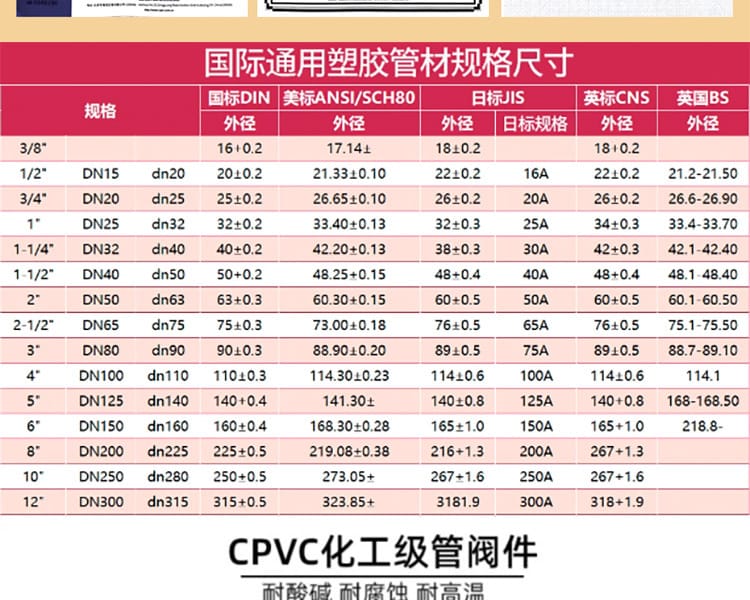 安徽台塑华亚塑胶科技有限公司是专业从事CPVC与UPVC化工级塑料管材管件研发与生产的实力厂商,拥有多年行业经验,通过ISO质量管理体系及环境管理体系认证,并取得饮用水卫生安全产品许可。公司主营产品包括CPVC/UPVC化工级90°弯头、45°弯头、三通、异径三通、直接、外丝直接、内丝直接、活接、补芯、马鞍座、管帽、球阀、法兰、盲板等全系列管路配件,规格覆盖DN15-DN400,符合国标(DIN)、美标(ANSI/SCH80)、日标(JIS)、英标(BS)等多种国际标准。 产品采用优质原料制造,具有耐酸碱、耐腐蚀、耐高温(CPVC最高使用温度达110℃)、抗压防裂、管壁光滑不易结垢等优异性能,广泛应用于石油化工、电子电镀、食品饮料、医药、水处理、空调系统等领域。工厂自有大型仓库,现货充足,支持代发代送,提供免费技术咨询。我们坚持全新料生产,层层质检,确保每一环节品质无忧。诚邀海内外经销商合作,一站式采购,省心省力,助力项目高效落地。