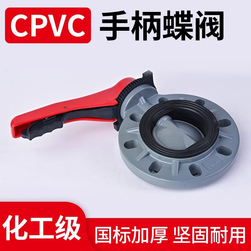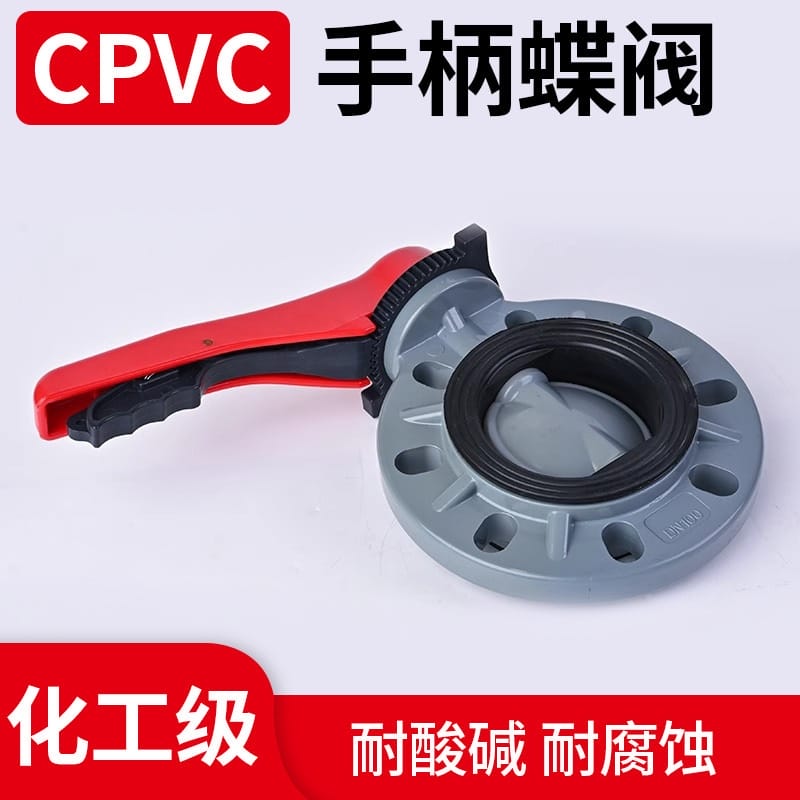 CPVC手柄蝶阀PN16耐高温国标对夹法兰阀门化工手动FPM密封圈蝶阀