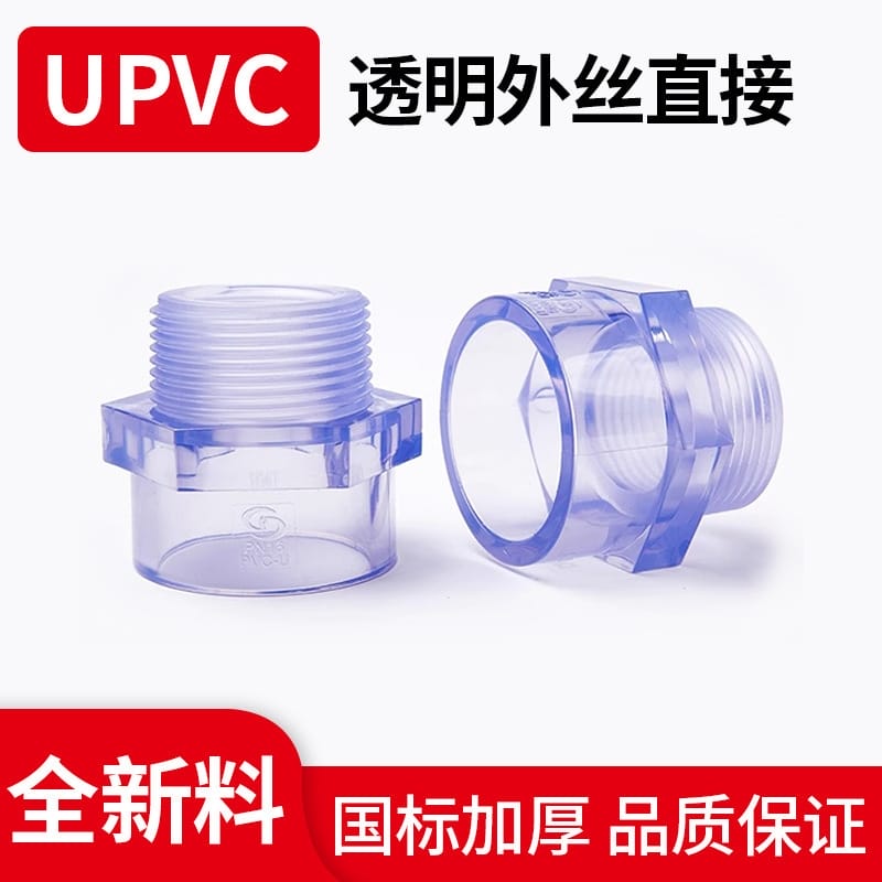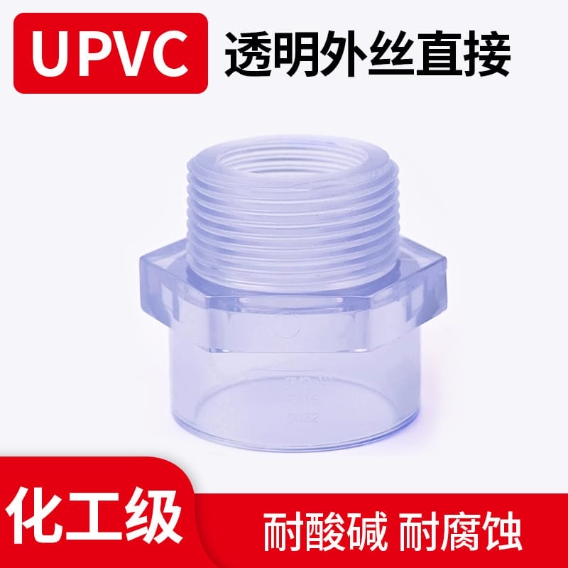 UPVC透明外牙直接外螺纹接头美标透明管配件鱼缸接头上下水接头