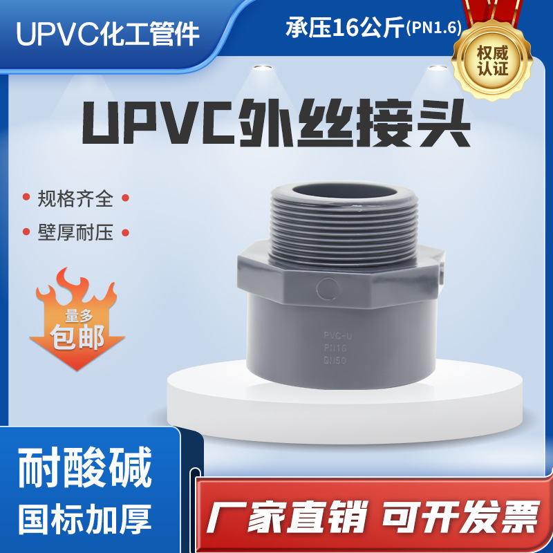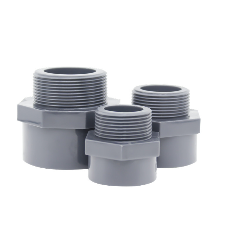 upvc工业螺纹接头塑胶化工外丝接头外牙深灰色工业配件6分1寸DN50