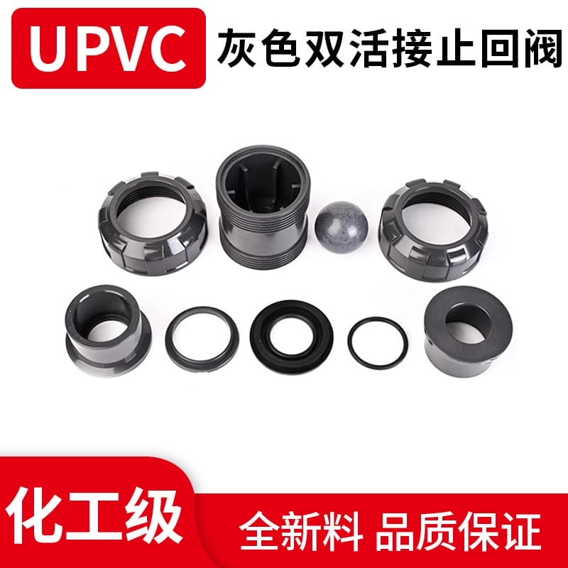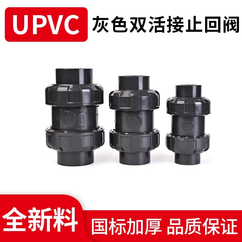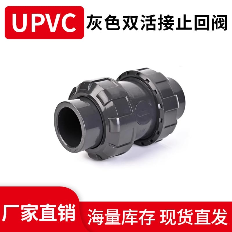 〉 UPVC双活接止回阀双由令单向阀pvc止回阀化工管逆止阀立式止水阀