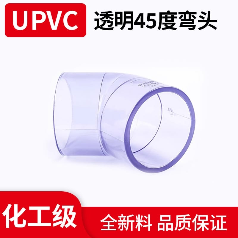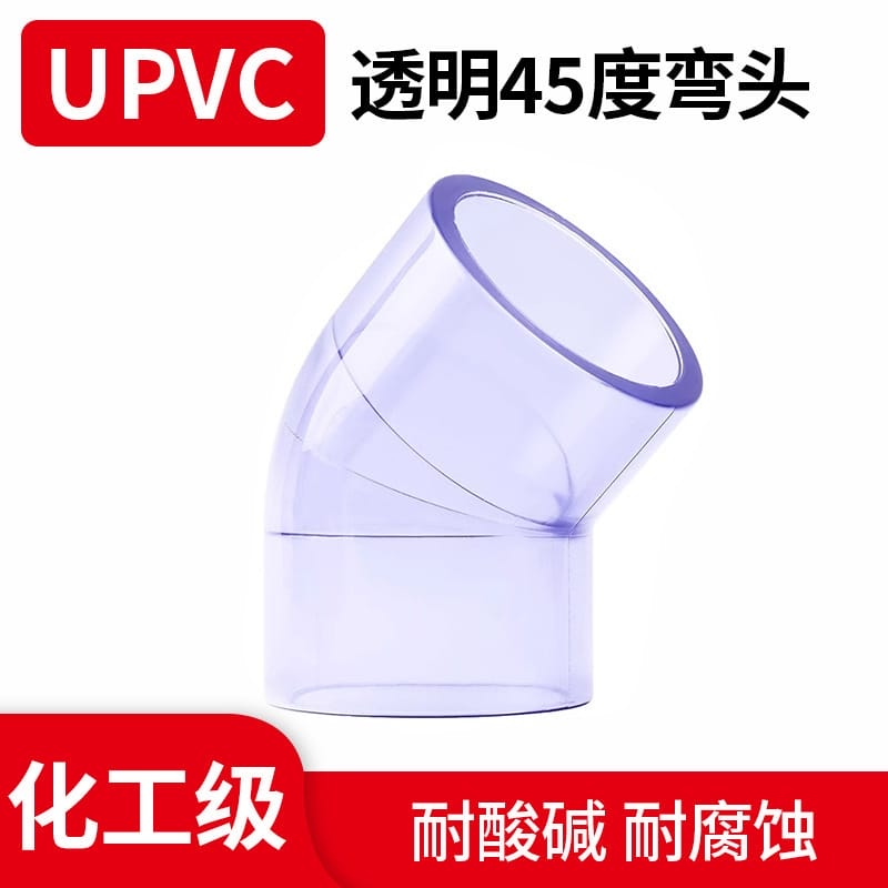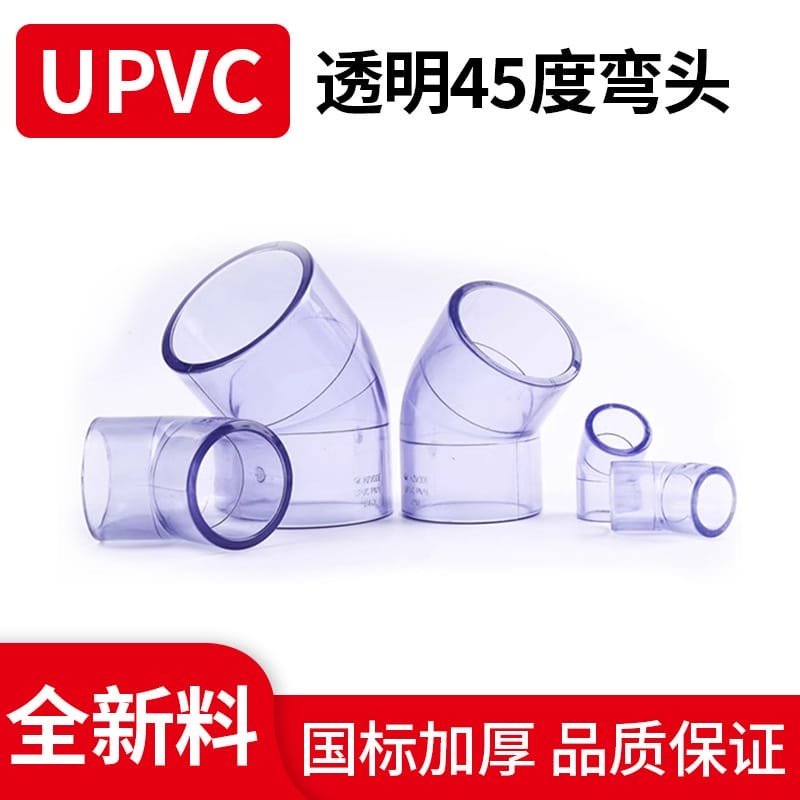 〉 国标新料UPVC透明45度弯头水族鱼缸透明PVC化工管道配件小弯