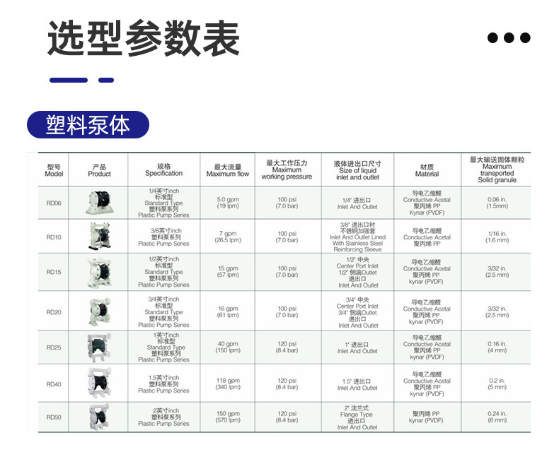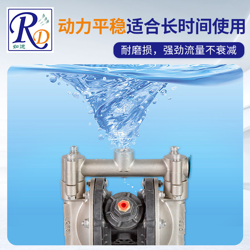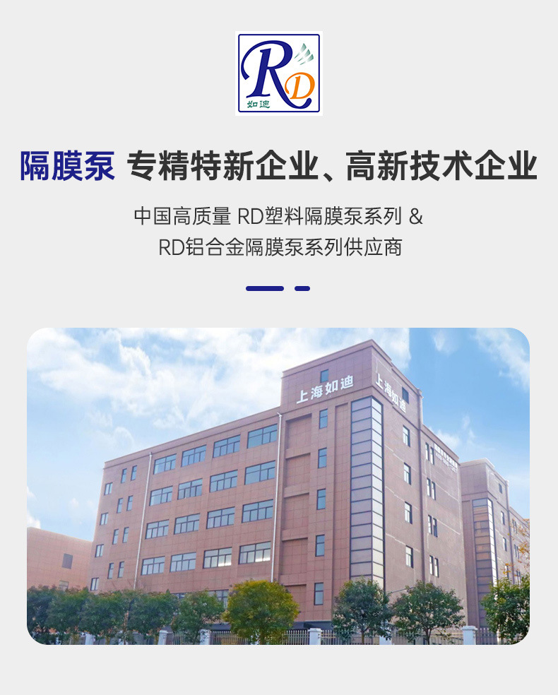 R D如迪(TRUNDEAN)是专注于气动隔膜泵研发与制造的专精特新及高新技术企业,致力于为各行业提供高效、可靠的流体输送解决方案。公司主营RD系列塑料与铝合金气动隔膜泵,产品以压缩空气为动力源,具备防爆、防漏、耐腐、耐磨、可空运转等优势,适用于化工、制药、食品、建筑、电子、污水处理等50多种复杂工况场景。 产品核心特点包括:无需引灌水即可自吸;无需润滑油,即使长时间空转也不损坏;流量与扬程可通过气源调节;结构简单,维护方便;可输送高粘度介质(≤10000mpa.s)及含颗粒液体(最大通过直径达9.4mm),流动宽敞不堵塞。 提供多种材质选择,包括PP塑料、氟塑料(PVDF)、不锈钢(304/316L)、铝合金和球墨铸铁,满足不同介质的耐腐蚀与耐磨需求。全系配置消音器,运行低噪安全,适用于易燃易爆环境。 已与BASF、AkzoNobel、亚士漆、三峡油漆、中广核、双虎涂料、佳化化学等多家知名企業建立长期合作关系,品质可靠,源头厂家直供,支持按需选型定制,是您值得信赖的隔膜泵解决方案提供商。
