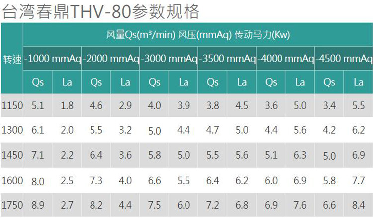 THV型真空式罗茨鼓风机的特性:使用寿命长:真空式罗茨鼓风机机件少且无磨耗,可长时间连续运转。低噪音:真空式罗茨鼓风机螺旋状出入口,噪音低。规格齐全:依CNS标准测试,并作成性能曲线表提供客户使用参考。