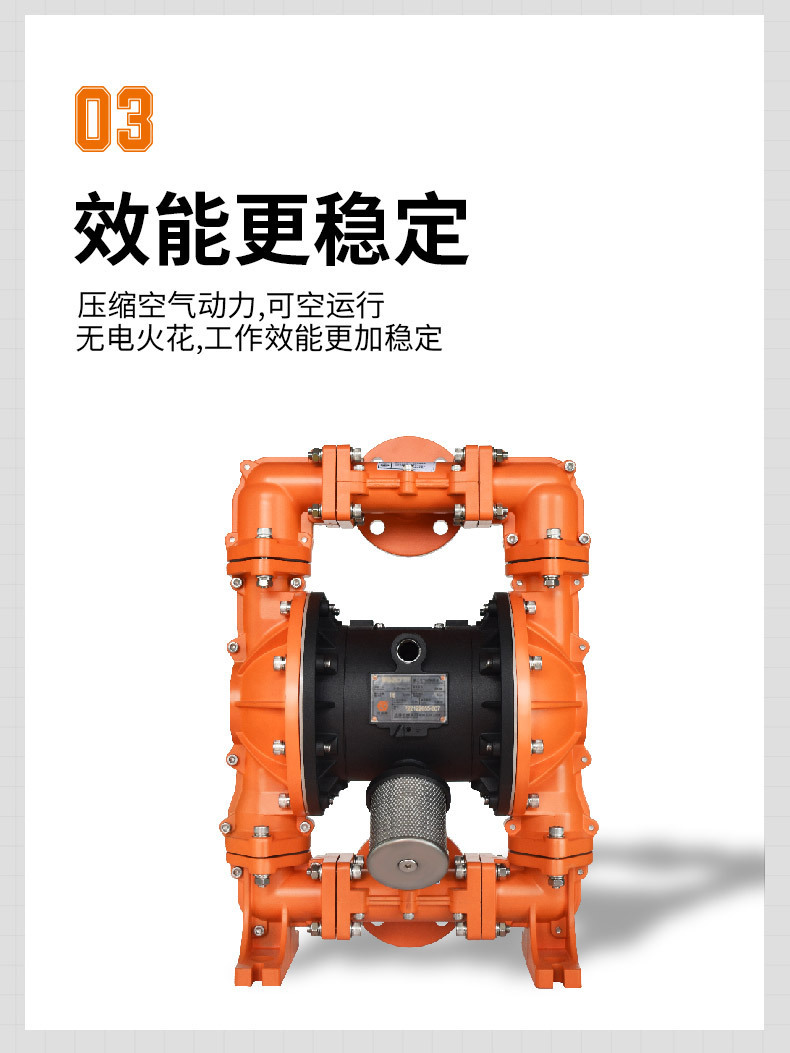 爱力浦(GTS)工业级气动隔膜泵,专注隔膜泵研发生产33年,产品通过防爆合格证、欧盟CE认证和品质标认证,安全可靠。采用压缩空气驱动,可空运行、无电火花,适用于易燃易爆环境,效能稳定。 泵体具备多重防腐设计:防腐蚀内壁、硬化层、压铸层、耐热层,确保长期输送腐蚀性液体不损坏。配备防爆金属消音器,高效降噪,提升使用体验。 多种材质可选:铝合金(轻度耐腐)、316不锈钢(强耐腐,适用于食品、化学品)、PP工程塑料(耐一般腐蚀)、氟塑料及衬氟材质(耐强酸强碱如硫酸、盐酸、氢氟酸等),满足不同工况需求。 广泛应用于电子企业输送酸性物料、新能源企业输送磷酸铁锂浆料、化工企业输送氨酸等腐蚀性原料。配套变频电机与脉冲阻尼器,提升输送稳定性。 型号齐全,流量覆盖22~1041 L/min,扬程最高84米,支持DN10~DN125口径选择,满足小流量到大流量多种场景。边锋机械集团出品,服务超10万客户,中粮、徐工、伊利、比亚迪、国药等五百强企业共同选择。全国包邮,支持海外发货,快速响应,售后无忧。