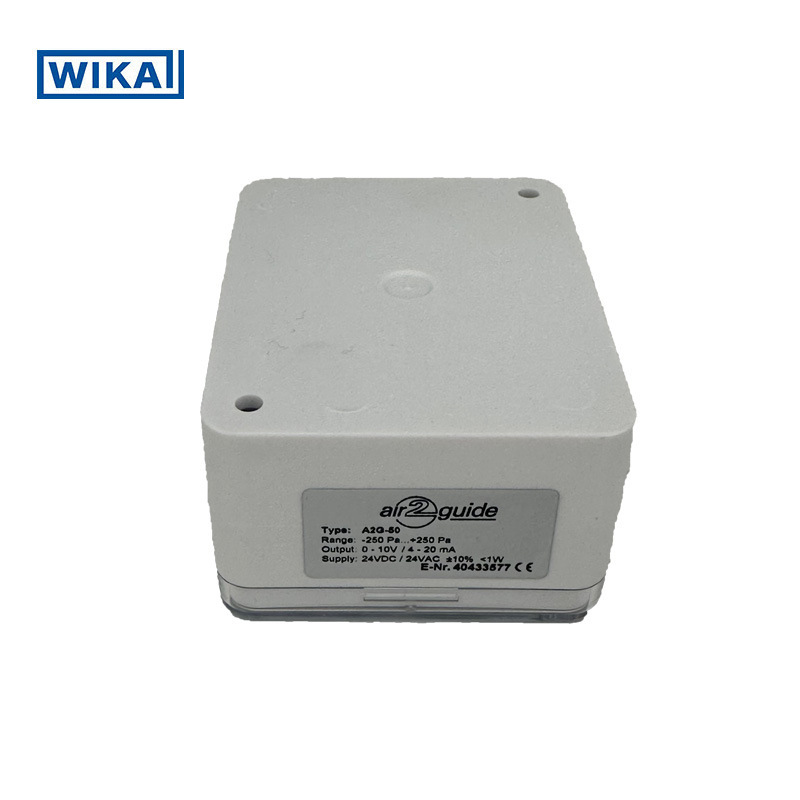 WIKA A2G-50差压变送器专为通风与空调系统中的气体介质差压测量设计,基于压阻式测量原理,具备高精度、高稳定性和强抗振性能。产品提供多种测量范围选择,支持0...10V、4...20mA三线制模拟输出及Modbus数字信号输出,可直接连接控制系统,实现高效自动化管理。内置LC显示屏,配合清晰菜单导航,便于快速调试与现场操作。设备采用一体式ABS外壳,防护等级达IP54,耐压抗震,适用于潮湿、腐蚀等复杂工况。支持自动或手动清零,响应时间快至50ms,确保动态测量精准可靠。广泛应用于过滤器状态监控、洁净室正压监测、实验室压力控制等场景,是工业环境压力测量的理想选择。