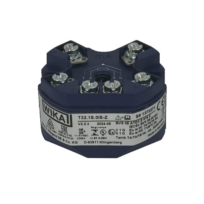 WIKA T32.1S.0IS-Z 温度变送器是一款高性能工业级测量设备,具备高精度、结构紧凑、运行平稳等特点,适合长时间连续作业。产品支持连接1个或2个传感器,响应时间快(约0.8秒),具备负压保护功能,可在-40°C至+85°C的宽环境温度范围内稳定工作,广泛应用于机械和设备制造、泵和压缩机、制冷系统、水处理及液压气动等工业场景。外壳防护等级高,采用盒装包装,确保运输安全。山东润泽北方测控有限公司提供专业选型咨询、定制化测量解决方案及仪表校准服务,以高质量产品与可靠技术支持保障客户应用需求。
