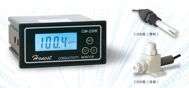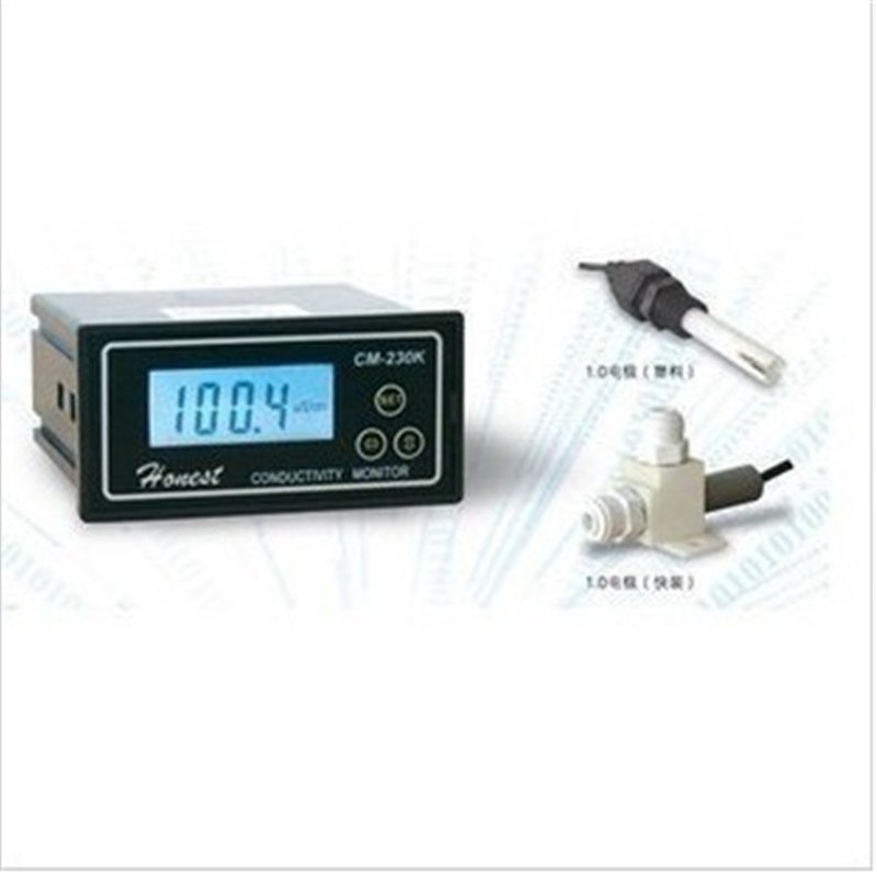 CM-230K(LCD)型电导率仪是我公司CM-230型电导率监视仪的升级换代产品,在保持原有产品性能的基础上,采用单片机数字化电路进行测量和温度补偿。该产品广泛适用于反渗透.海水淡化.电渗析等水处理设备在线电导率测量和监控。具有使用更方便,操作更简便,性能更完善等特点。