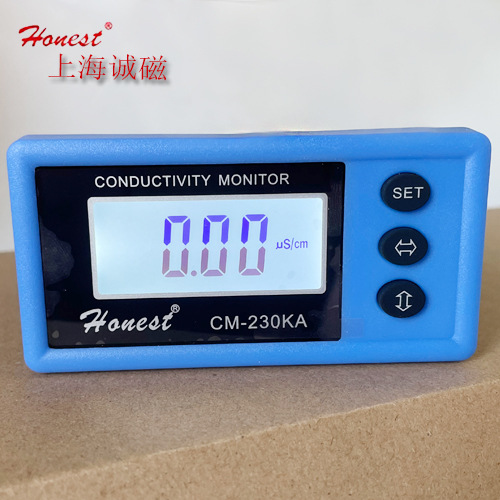 CM-230K(LCD)型电导率仪是我公司CM-230型电导率监视仪的升级换代产品,在保持原有产品性能的基础上,采用单片机数字化电路进行测量和温度补偿。该产品广泛适用于反渗透.海水淡化.电渗析等水处理设备在线电导率测量和监控。具有使用更方便,操作更简便,性能更完善等特点。