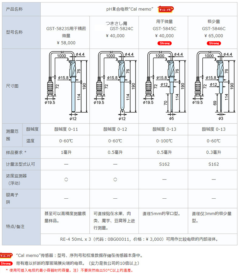 本系列产品为三信(Sanxin)专为HM-40P设计的pH及ORP复合电极,包括GST-2739C、GST-5841S、ELP-040、PST-2739C等多种型号,满足不同应用场景需求。产品涵盖一般用途、有机溶剂测量、强酸环境及微量样品检测,具备防水设计与‘Cal memo’数据存储功能,自动保存型号、序列号和校准信息。部分型号配备银离子阱、可更换玻璃头或厚膜抗冲击结构,提升耐用性与测量精度。电缆长度提供1m至11m多种选择,适配HM-41X、HM-42X等仪表。配套温度传感器ELT-001/ELT-002可实现完整热控测量。所有电极均符合日本计量法型式认证,确保合规与可靠性。