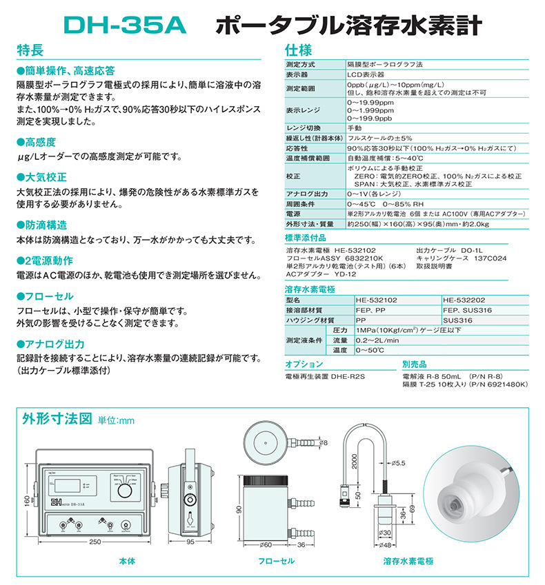 〉 日本TOA-DKK东亚电波便携式溶解氢仪DH-35A